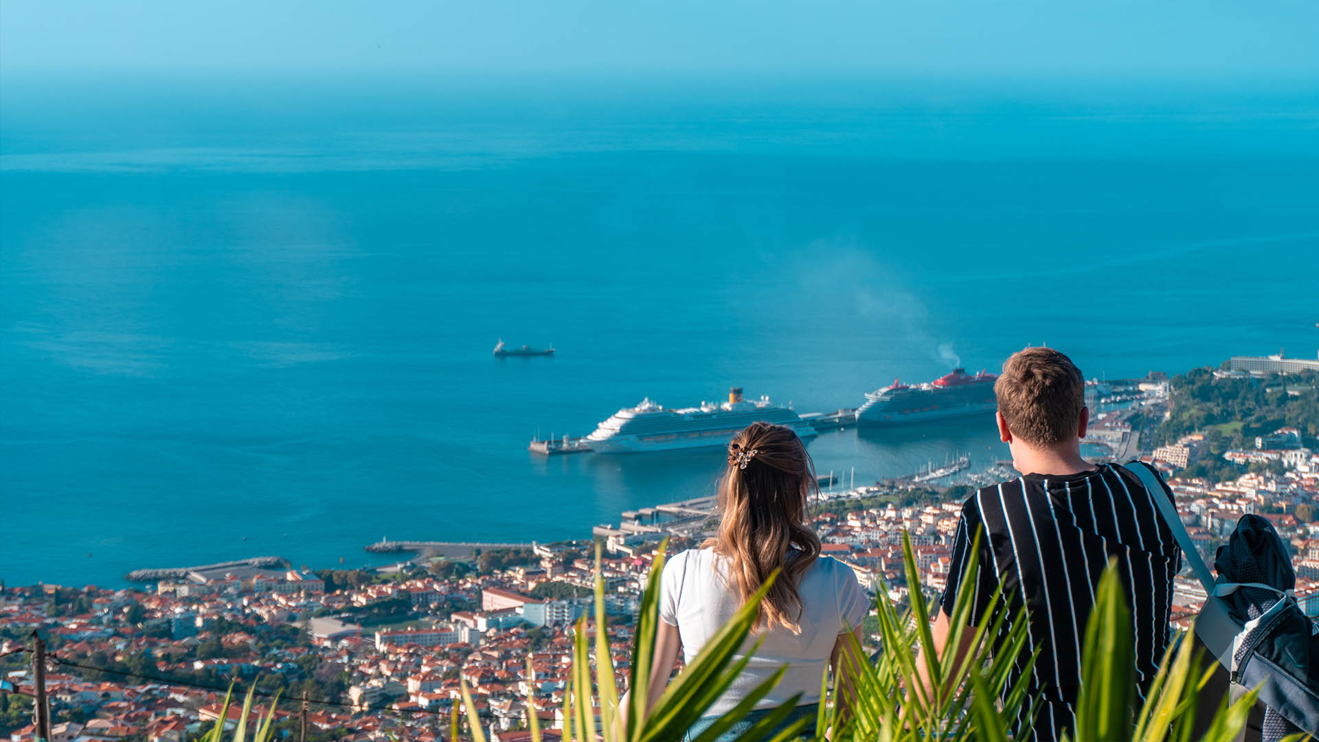 Step into the wonderful world of Madeira as our journey starts at Largo do Miranda. Here, we can see beautiful views of Funchal and Desertas islands, which sets the scene for an amazing adventure.